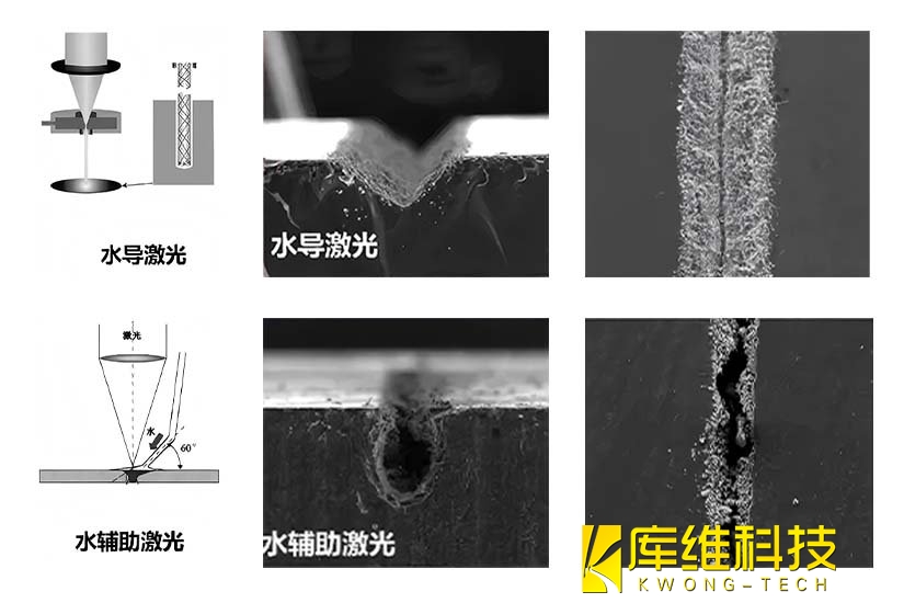 水導激光加工技術:水導激光與水輔助激光切割硅片對比