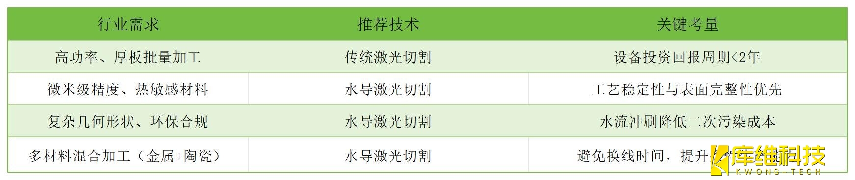 對于追求極致精度與環保的企業,水導激光切割正成為高端制造的新標準;而傳統激光切割仍在大規模金屬加工領域保持不可替代性。