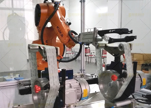 針對小型的五金件(如把手),利用機器人帶夾持工具對五金鑄件的毛刺飛邊的打磨和拋光而專門設計的產品。該單元主要由機器人及砂帶機和拋光機構成 ,轉臺進行變位協同及工件裝卸,全自動化完成產品的打磨拋光過程