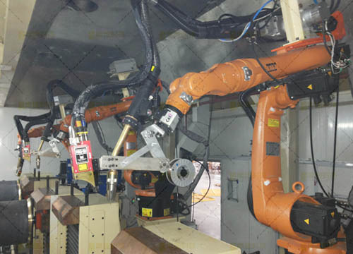 全數字化焊接系統(tǒng),焊接機器人與變位機同步運作各種附件:焊槍設計、送絲機構、洗焊槍裝置、焊縫跟蹤或定位裝置;